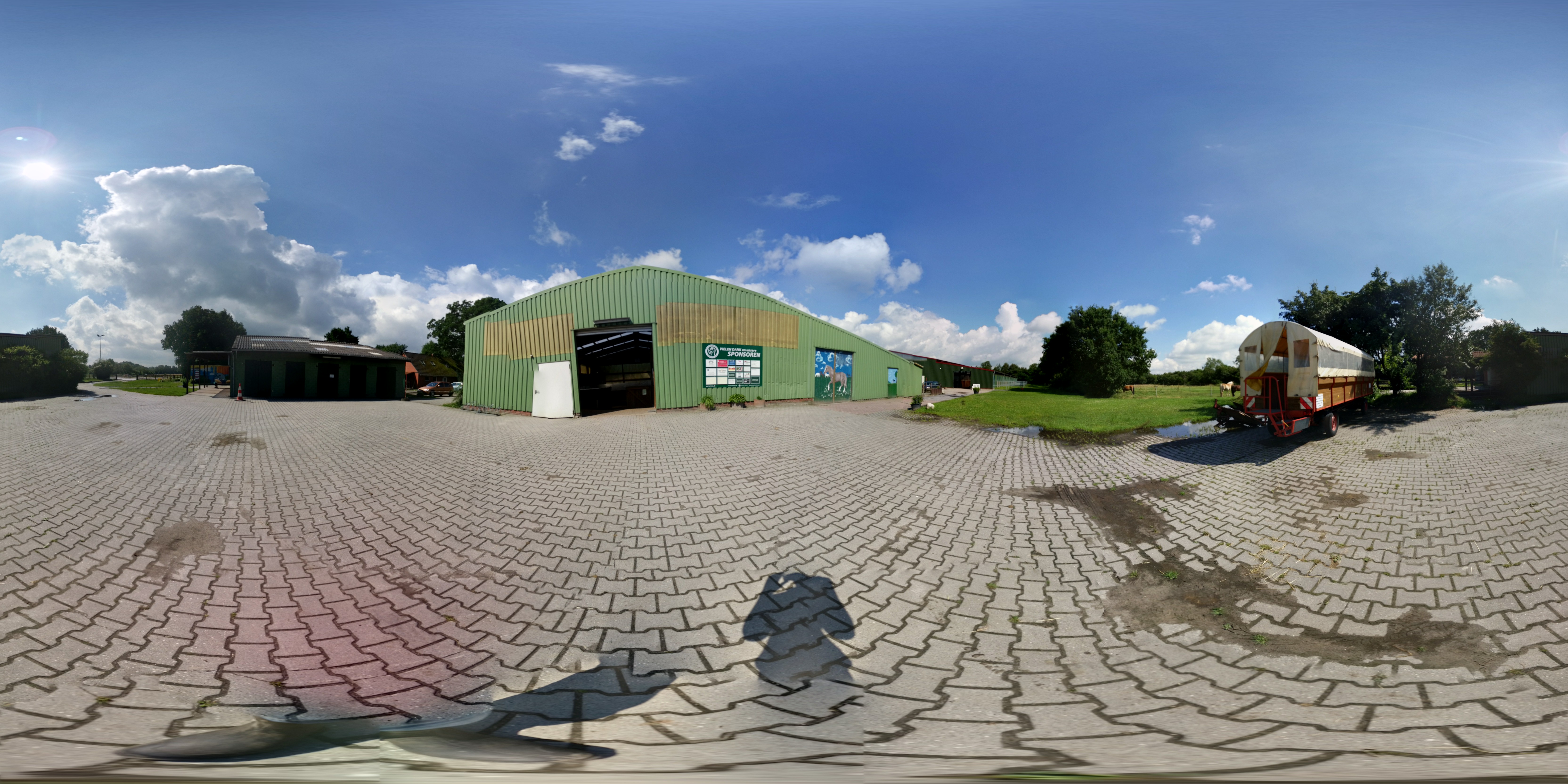 * verfügt über 2 Reithallen 60 x 20 m und 15 x 30 m, beide mit automatischer Beregnungsanlage ausgestattet